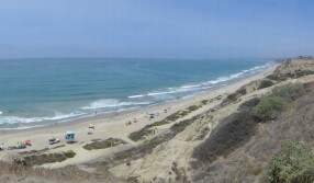 This blufftop campground is within earshot of Interstate 5, yet far enough and well-landscaped enough to give the impression of being more remote. The layout has a much more open feel than the strip campgrounds to the south and the many trees provide shade and create a pleasant atmosphere. The mile long beach is a quick walk down the bluff and provides access to the city's rail trail. Though the beach here is plenty attractive, this campground also serves as an excellent basecamp for visits to adjacent San Onofre State Beach and its world famous waves at Trestles. From the campground, that area is a very short car trip or about a mile walk down the beach. There are hot showers and a camp store.