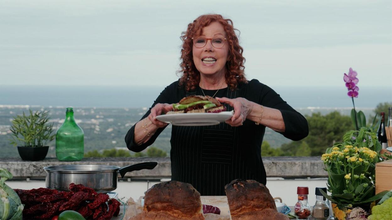 There’s bread and the bread of Altamura, a small city in Puglia famous for ‘the best bread on earth.’ Heading to the bakery, Panificio de Gesu, I find out it’s true. Mountain-shaped loaves, made from 90-year-old starter; baked fresh all day long are the best on earth. We make some yummy sandwiches from this bread and a loaf from my hometown to showcase the role of healthy breads in our diet.