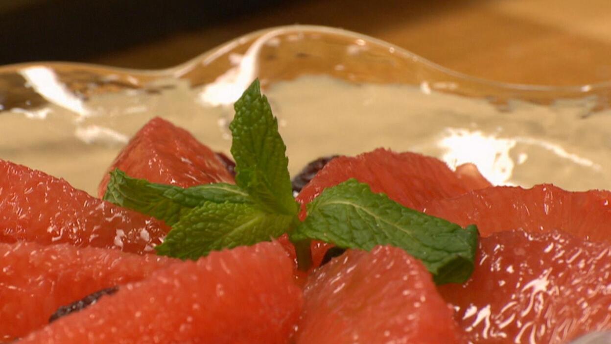 Ratatouille with Penne; Shrimp with Cabbage and Red Caviar; Peach Melba.
