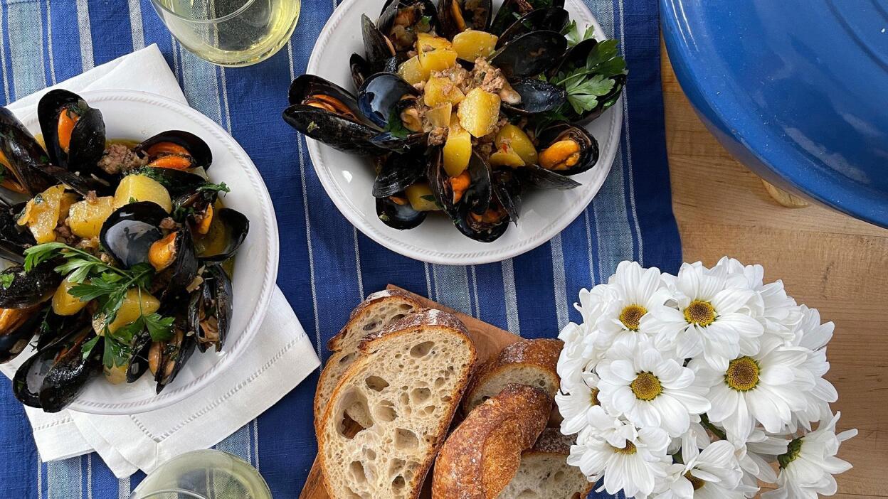 Time spent cooking in the kitchen helps shape and grow your palate, your technique, and your confidence. And today, Lidia shares the secret to making her Shaved Artichoke, Spinach, and Mortadella Salad. Lidia pairs this special salad with one of her favorites Mussels, Sausage, and Potatoes in White Wine, an excellent choice for a weeknight one-pot meal.