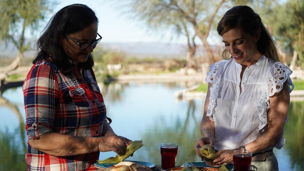 Pati is inspired by Sonora’s “northern flavors” where the hot, arid desert lends itself to hearty and surprising recipes. She makes traditional tamales with corn, chiles, and cheese, and then for the main course, pork chops topped with a pickled grape salad. In Sonora, she visits a traditional hacienda, where she gets a true taste of Sonoran ranch food.