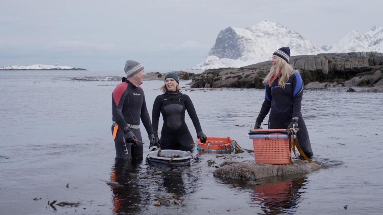 The team visits the beautiful mountains of Lofoten for a ski trip and a spectacular view of the Arctic islands. To prepare for dinner, Arne and Frida gather their main ingredient, Arctic kelp!